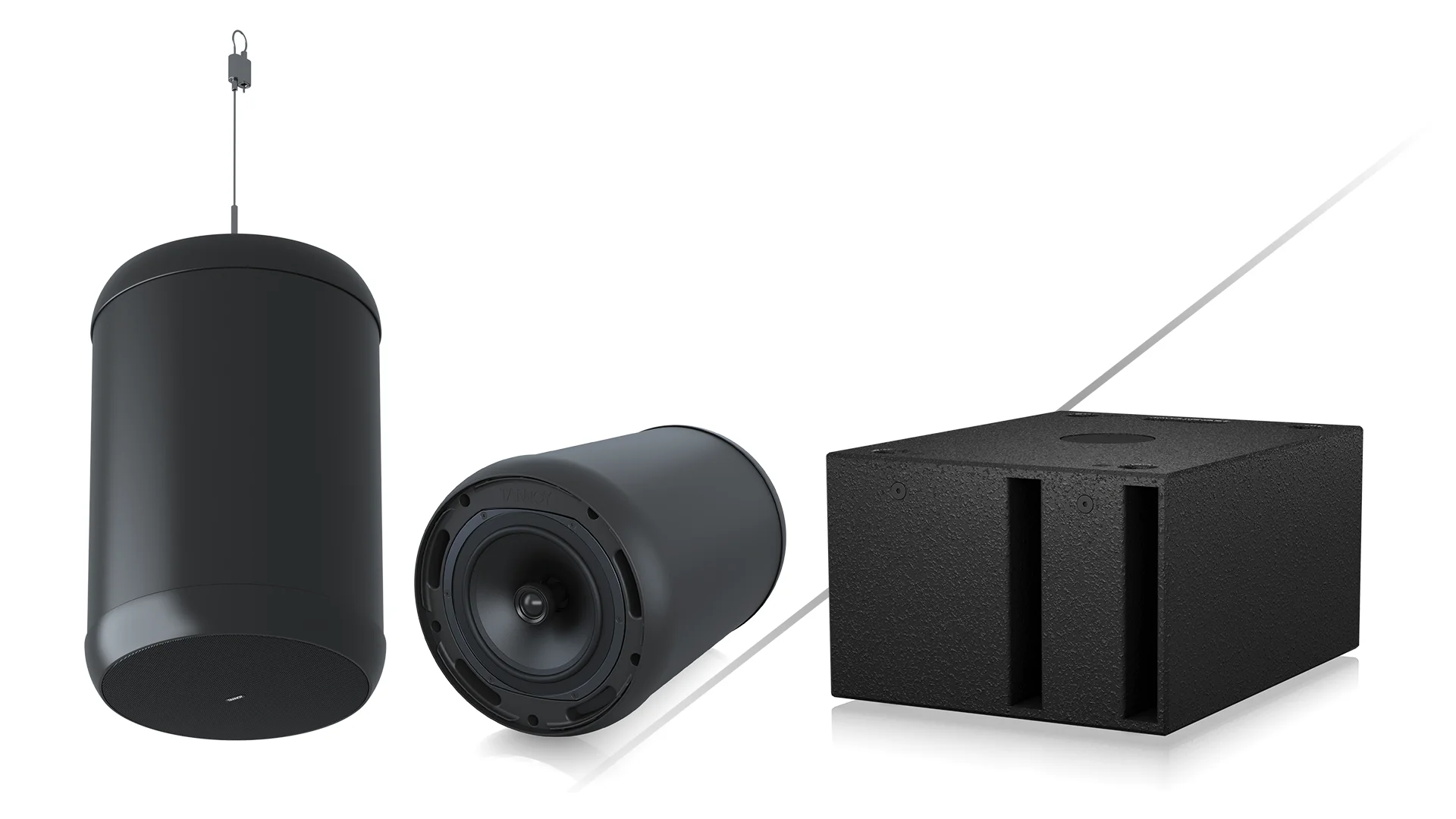 縦長で天井が高いという空間特性、そしてダンサーたちのステージがあることを踏まえ、スピーカーは天吊り式を採用。製品選定の中で白羽の矢が立ったのが、TANNOYのペンダントスピーカー「OCV 8」でした。