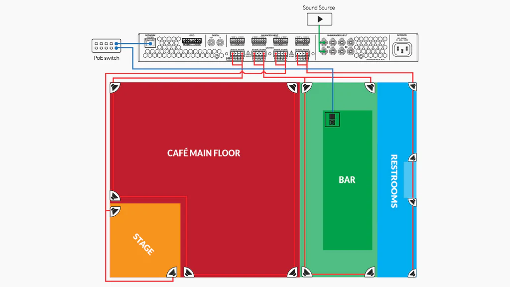 カフェのオーディオシステムのための、手早く簡単なDSP設定