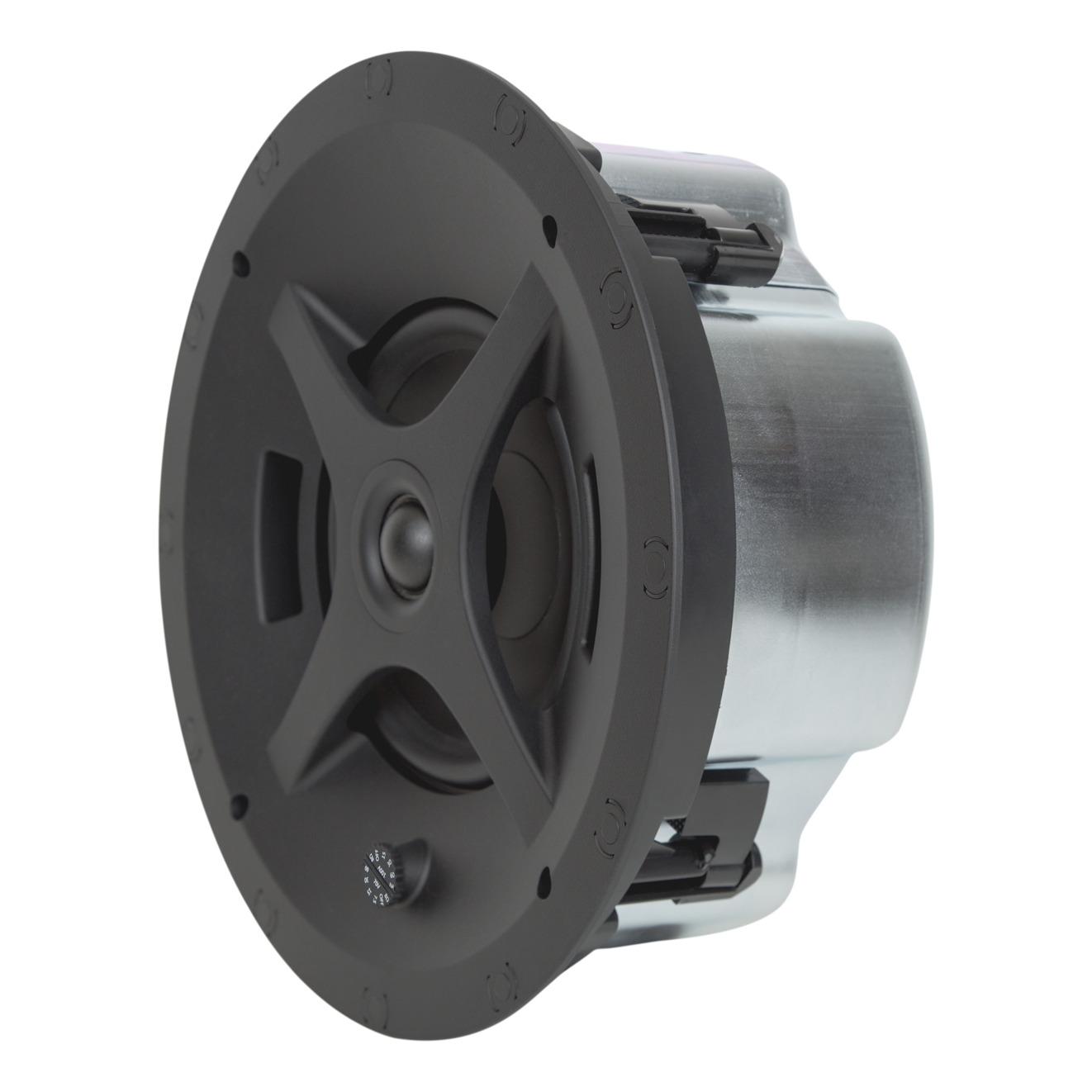 ベゼルレスのマグネット式グリルやオプションのスクエアアダプターに対応し、6.5インチ・ハイエクスカーション・ウーハーと、正確なサウンド・カバレッジを実現するピボッティングツイーターを搭載。密閉型金属製エンクロージャーには、ノックアウト孔、着脱式ユーロブロック・コネクター、耐震固定金具が装備されています。UL 1480およびUL 2043の認証を取得しており、施工における高い安全性と信頼性を確保しています。