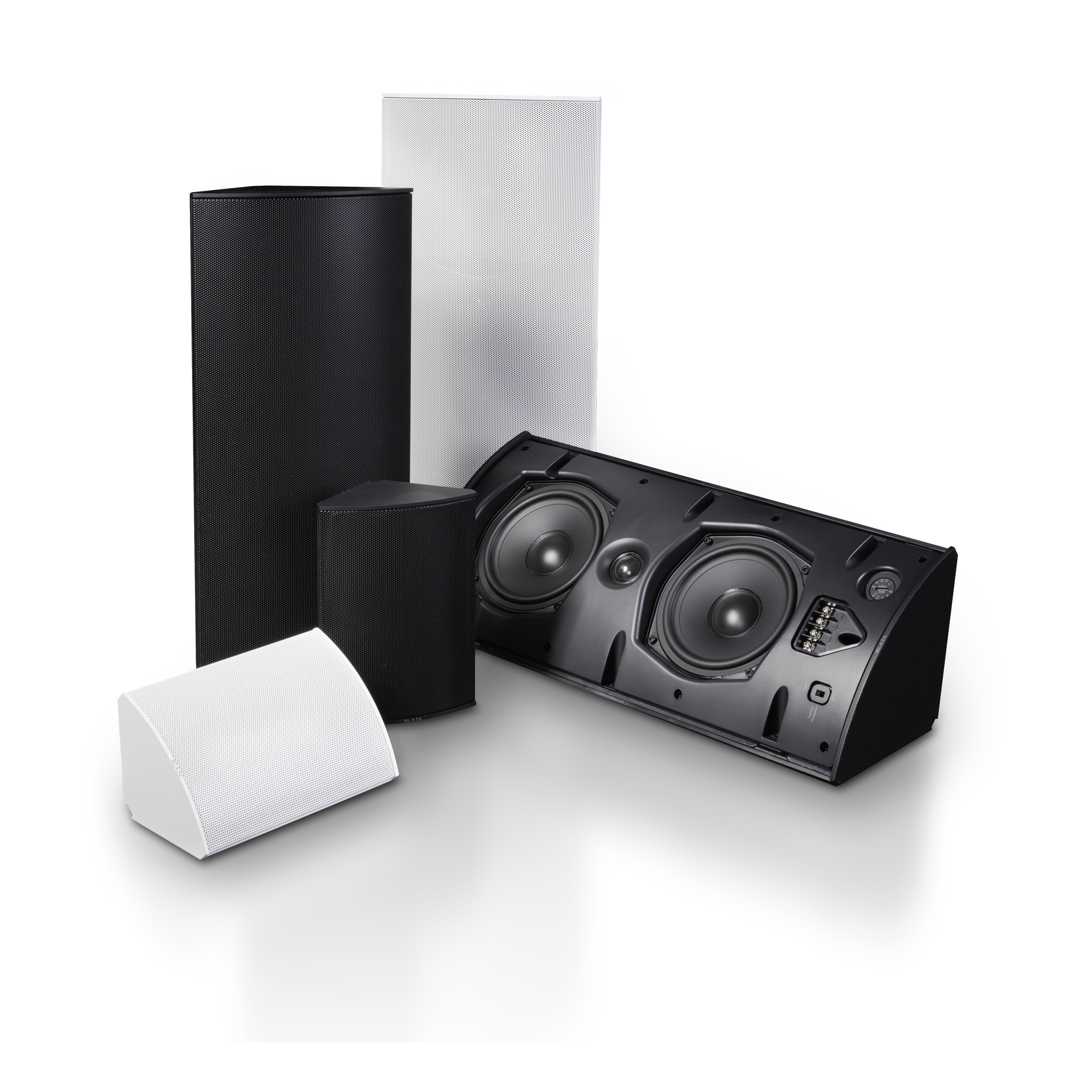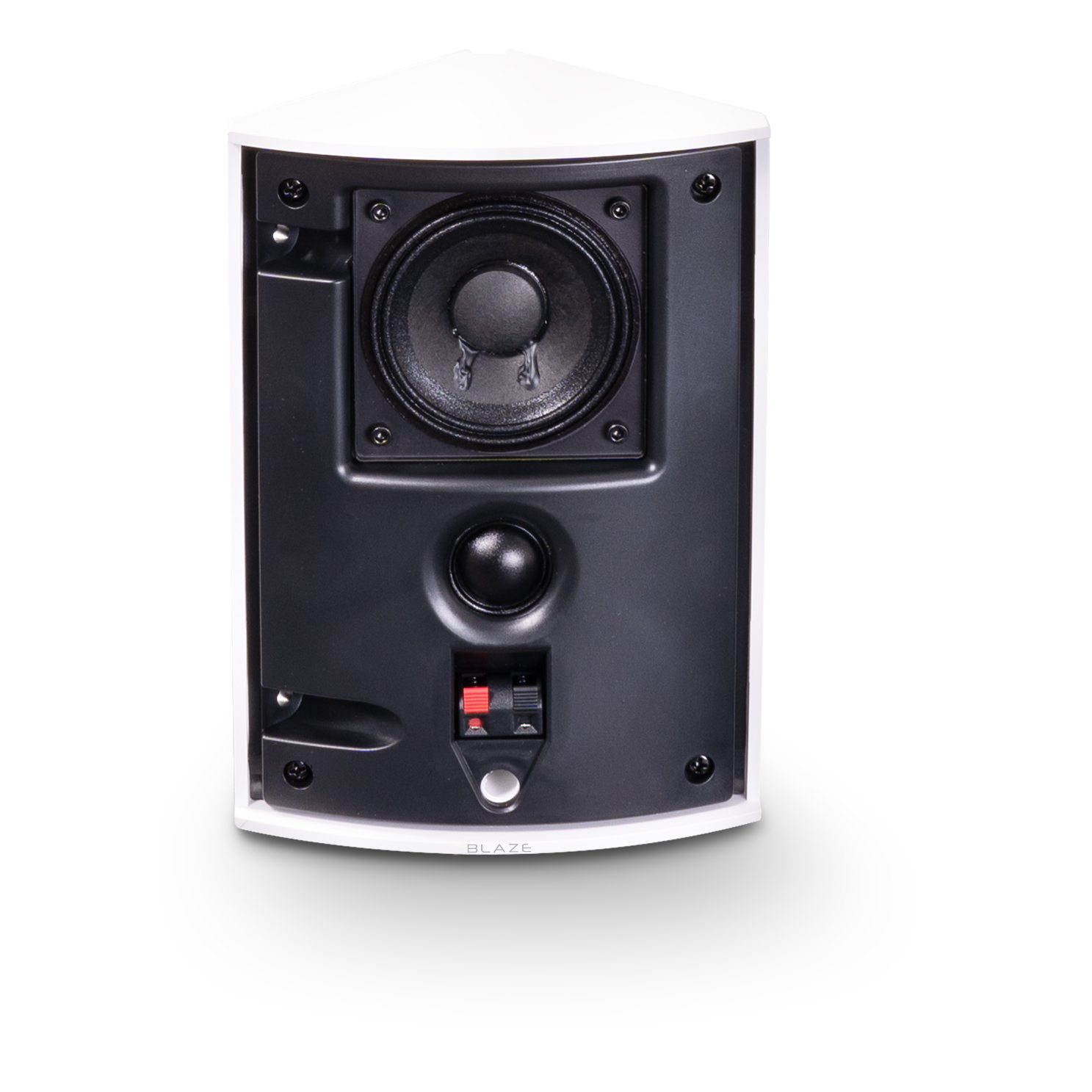 - 三角形ABSエンクロージャー、メタルグリルを採用。ブラケット不要で設置可能。隠蔽型ケーブル接続、プッシュターミナルを装備。